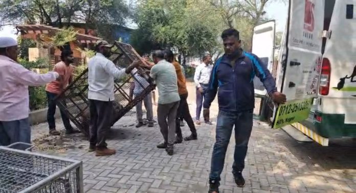 कामठी:- आखिरकार खैरी गांव में आतंक मचाने वाले लाल मुंह के बंदरों को पकड़ने में खेरी ग्राम पंचायत को सफलता प्राप्त हुई है,नागपुर जिले के कामठी तहसील अंतर्गत आने वाले खैरी में कई वर्षों से लाल मुंह वाले बंदरों का आतंक है. इन लाल मुंह वाले सैकड़ों बंदरों ने गांव में बुजुर्गों के साथ-साथ बच्चों को भी कई बार काटा है. इससे गाँव में भय का माहौल था. बच्चे, बूढ़े और गाँव के नागरिक अपने घरों से बाहर निकलने से डर रहे थे. अब आख़िरकार उन्होंने रहत की सांस ली है.
