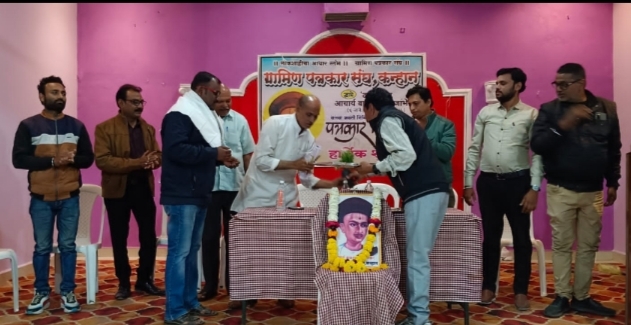 सोमवार (दि.६) जानेवारी २०२५ ला ग्रामिण पत्रकार संघ कन्हान व्दारे डोणेकर सभागृह कन्हान येथे माजी जि.प.अध्यक्ष मा. शरद भाऊ डोणेकर यांचे अध्यक्षेत आणि ग्रा.प.संघाचे मार्गदर्शक अजय त्रिवेदी, भाजपा जेष्ट नेते डॉ मनोहर पाठक, महामंत्री रिंकेश चवरे, कँप्टन सतिश बेलसरे, व्यावसायीक राजन विनयवार आदी मान्यवराच्या प्रमुख उपस्थित ‘दर्पण’ कार आचार्य बाळशास्त्री जांभेकर यांच्या प्रतिमेला पुष्पहार व पुष्प अर्पण आणि अभिवादन करून कार्य क्रमाची सुरूवात करण्यात आली. याप्रसंगी भोई, ढिवर संघाचे मा. सुतेश मारबते, भुमिपुत्र सामाजिक संघटनाचे शिवशंकर (चिंटु) वाकुडकर, सामाजिक कार्यकर्ते मा. चंद्रशेखर पडोळे, नगरसेवक विनय यादव, शितला माता मंदीर कमेटीचे वामन देशमुख, राजेश पोटभरे, बादल विश्वकर्मा, हॉकर्स युनियनचे श्रीधर केसेट्टी, माजी ग्रा प कांद्री सदस्य चंद्रशेखर बावनकुळे, आप चे ज्ञानेश्वर दारोडे, अखिलेश मेश्राम, मुनिदा सुखदेवे,  पुरूषोत्तम रक्षक, गौरव भोयर आदी मान्यवर प्रामु ख्याने उपस्थित होते. कार्यक्रमास कन्हान थानेदार मा. राजेंद्र पाटील हयानी भेट देऊन पत्रकारांना पत्रकार दिनाच्या शुभेच्छा दिल्या. उपस्थित मान्यवरांना वृक्ष देऊन स्वागत करण्यात आले. यावेळी केक कापुन पत्रकार जयंत कुंभलकर चा वाढदिवस सुध्दा साजरा करण्यात आला. तदंतर मान्यवरांच्या हस्ते ग्रामिण पत्रकार संघ कन्हानचे अध्यक्ष मोतीराम रहाटे, मार्गद र्शक अजय त्रिवेदी, कार्याध्यक्ष कमलसिंह यादव, उपा ध्यक्ष गणेश खोब्रागडे, सचिव सुनिल सरोदे, सदस्य शांताराम जळते, मोहन रंगारी, निलेश गाढवे, दिनेश नानवटकर, जयंता कुंभलकर, आकाश पंडीतकर, ऋृषभ बावनकर, रविंद्र कोचे आदी पत्रकारांना वृक्ष, दुपटा, दिनदर्शिका आणि पेन देऊन सत्कार करण्यात आला. कार्यक्रमाचे सुत्रसंचालन गणेश खोब्रागडे यानी तर आभार निलेश गाढवे यानी व्यकत केले. सर्वाना अल्पोहार वितरण करून पत्रकार दिन थाटात साजरा करण्यात आला.