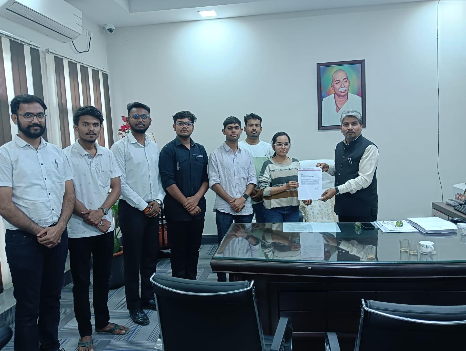 नुकतेच राष्ट्रसंत तुकडोजी महाराज नागपूर विद्यापीठाने PET परीक्षेचे परिपत्रक काढले त्यात विद्यार्थ्यांना आभासी पद्धतीने संकेतस्थळावर जाऊन लॉगिन करून परीक्षा फॉर्म भरावयाचा असल्याने अनेक विद्यार्थ्यांनी फॉर्म भरण्यासाठी वंचित राहिले आहे. त्याकरिता आज अभाविप नागपूर महानगर द्वारा राष्ट्रसंत तुकडोजी महाराज नागपूर विद्यापीठाच्या प्र–कुलगुरू राजेंद्र काकडे यांना निवेदन देऊन पेट प्रवेश परीक्षेच्या फॉर्मची 10 दिवसांनी मुदत वाढविण्याची मागणी यावेळी विद्यार्थी परिषदेने केली, जेणेकरून परीक्षा फॉर्म भरण्यापासून वंचित असलेल्या विद्यार्थ्यांना पुरेसा वेळ मिळेल. यावेळी नागपूर महानगर मंत्री कु दुर्गा भोयर, नागपूर महानगर सहमंत्री श्री शुभ जयस्वाल, धरमपेठ नगर अध्यक्ष श्री किशोर पाटिल सर व सर्व विद्यार्थी कार्यकर्ते उपस्थित होते.