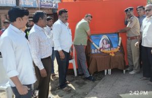 शुक्रवार (दि.१४) फेब्रुवारी२०२५ ला सकाळी११ वाजता तारसा रोड चौक कन्हान येथे राजे छत्रपती शिवाजी महाराजांच्या जयंती निमित्य मराठा सेवा संघ कन्हान आणि राजे छत्रपती शिवाजी महाराज जन्मो त्सव समिती कन्हान व्दारे छत्रपती शिवाजी महाराजां ची अस्थाई मुर्ती मसेसं मार्गदर्शक मा ताराचंद निंबाळ कर यांचे अध्यक्षेत स्थापित करून कन्हान पोलीस स्टेशन पीएसआय मा.राजकुमार देशपांडे सर, किराणा दुकानदार असोशियन अध्यक्ष संजय खोब्रागडे यांच्या हस्ते राष्ट्रमाता जिजाऊ आणि महापुरूषांच्या एकत्रित प्रतिमेला पुष्पहार माल्यापर्ण करून ” जय जिजाऊ !! जय शिवराय !!”, ” तुम्हचे आम्हचे नाते काय ? जय जिजाऊ !! जय शिवराय !!” च्या गर्जेने सह राजे शिवाजी महाराजांच्या मुर्तीस पुष्पाचा वर्षाव करून राजे शिवाजी महाराज जन्मोत्सवाचा थाटात शुभारंभ करण्यात आला. हा जन्मोत्सव सोहळा सतत (दि.२०) फेब्रुवारी पर्यंत शिवाजी महाराजांचे पोवाडे, लेझीम, शिवगर्जना ढोल ताशा, आखाडा सह विविध कार्यक्रमा ने मानवंदना सह जन्मोत्सव सोहळा थाटात साजरा करण्यात येणार आहे. याप्रसंगी शांताराम जळते, मोती राम रहाटे, जिवन मुंगले, संदीप कुकडे, दिवाकर इंगोले ,राकेश घोडमारे, राजेंद्र शेंदरे, योगराज अवसरे, अमोल देऊळकर, शिवशंकर वाकुडकर, रोशन गेचुडे, आंनद इंगोले, प्रदीप देशमुख, बाळासाहेब मेश्राम, चंद्रशेखर बावनकु़ळे, विजय खडसे, नामदेव नवघरे, संजय चहां दे, मंगेश काठोके, चेतन जयपुरकर, विठ्ठल मानकर, बाळा नागदेवे, भारत मोकरकर,चेतन वैद्य, प्रविण सोनेकर, जय यादव, अरूण बावनकुळे, सचिन गेचुडे, प्रज्वल मोकरकर, चंदन बागडी, शांतनु वानखेडे सह बहु संख्येने शिवप्रेमीनी उपस्थित राहुन शिवाजी महा राजांना मानवंदना अर्पण करण्यात आली. राजे छत्रप ती शिवाजी महाराज जन्मोत्सवाच्या यशस्विते करिता मराठा सेवा संघ आणि छत्रपती शिवाजी महाराज जन्मोत्सव समिती कन्हान पदाधिकारी, सदस्यासह शिवप्रेमी परिश्रम करून सहकार्य करित आहे.